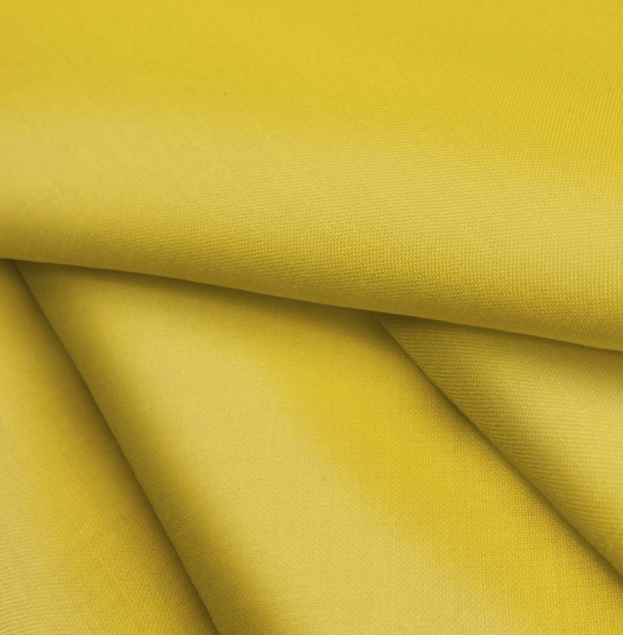 La tela base es Voile Ligero - Kyoto de composición 100% POLIÉSTER, con un color liso impreso en tonos Marron y Ocre Dorado, reflejando un CMYK de 18 31 91 6. Este color secundario simboliza la calidez y la elegancia, combinando especialmente bien con tonos neutros como blanco, beige o gris.