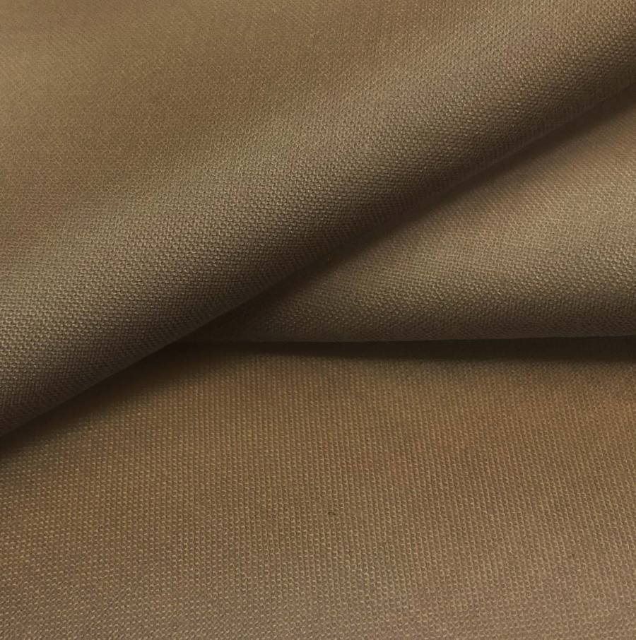 La tela base de esta descripción es el Voile Ligero - Kyoto, de composición 100% poliéster, con un color liso impreso de tono marrón oscuro bronceado. El CMYK de este color es 42 53 74 49. Este color secundario simboliza elegancia y sofisticación, combina perfectamente con tonos neutros como el blanco, beige y gris.