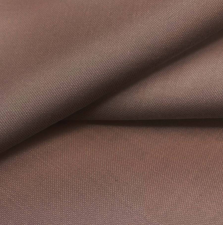 La tela base, llamada Voile Ligero - Kyoto, es un tejido de poliéster suave y translúcido, de color marrón intenso con una combinación de tintas Cyan: 40, Magenta: 57, Yellow: 58 y Black: 49, reflejando un CMYK de 40 57 58 49. Este color secundario se asemeja al café oso, con tonalidades tierra cálidas que evocan confort y elegancia. Combina especialmente bien con tonos neutros como beige y blanco, así como con colores más vibrantes como naranja o verde oliva.