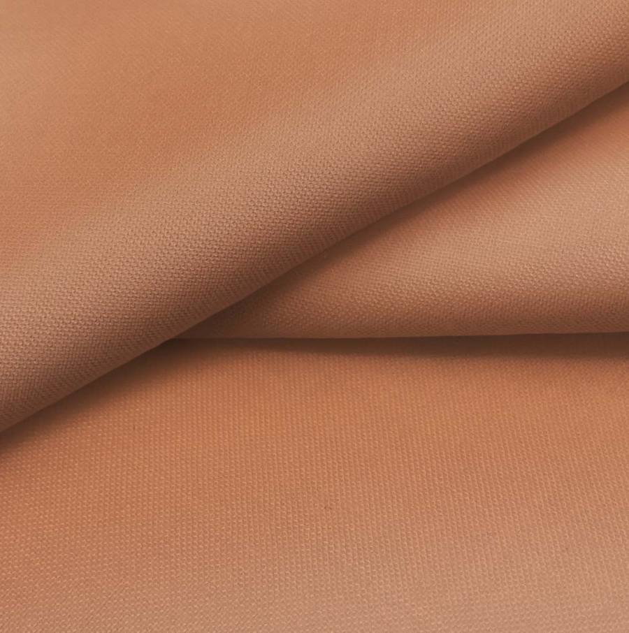 La tela base Voile Ligero - Kyoto es de color liso Marron, con un tono Terracota Oscuro, reflejado en el CMYK: 25 61 69 17. Este color transmite calidez y elegancia, combina especialmente bien con colores neutros como blanco, beige, o gris.