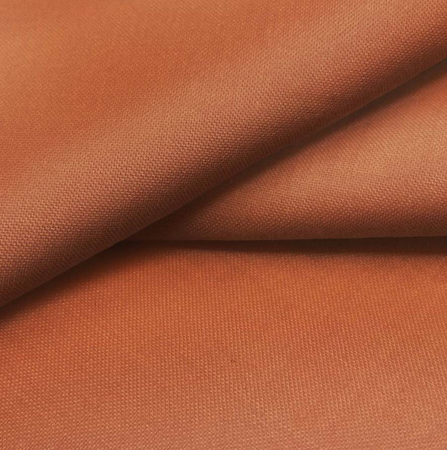 La tela base de Voile Ligero - Kyoto es de color naranja siena, con un CMYK de 27 70 84 22, lo que le otorga un tono cálido y vibrante. Este color combina especialmente bien con tonos tierra como marrones y ocres, así como con colores neutros como beige y blanco.
