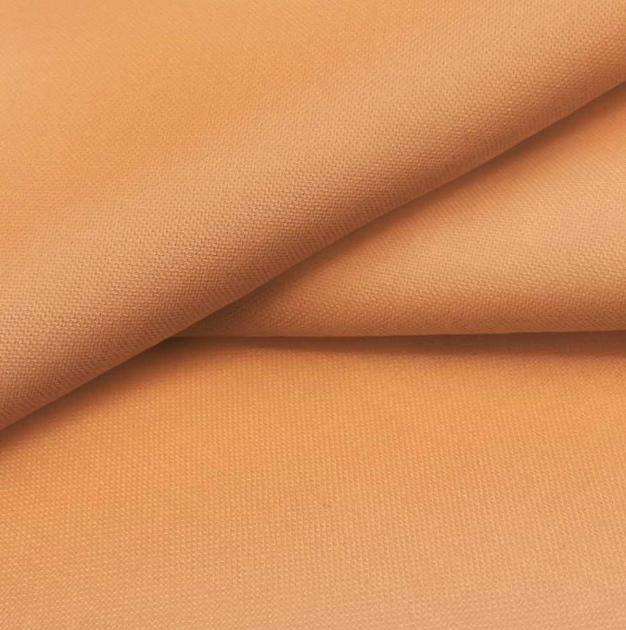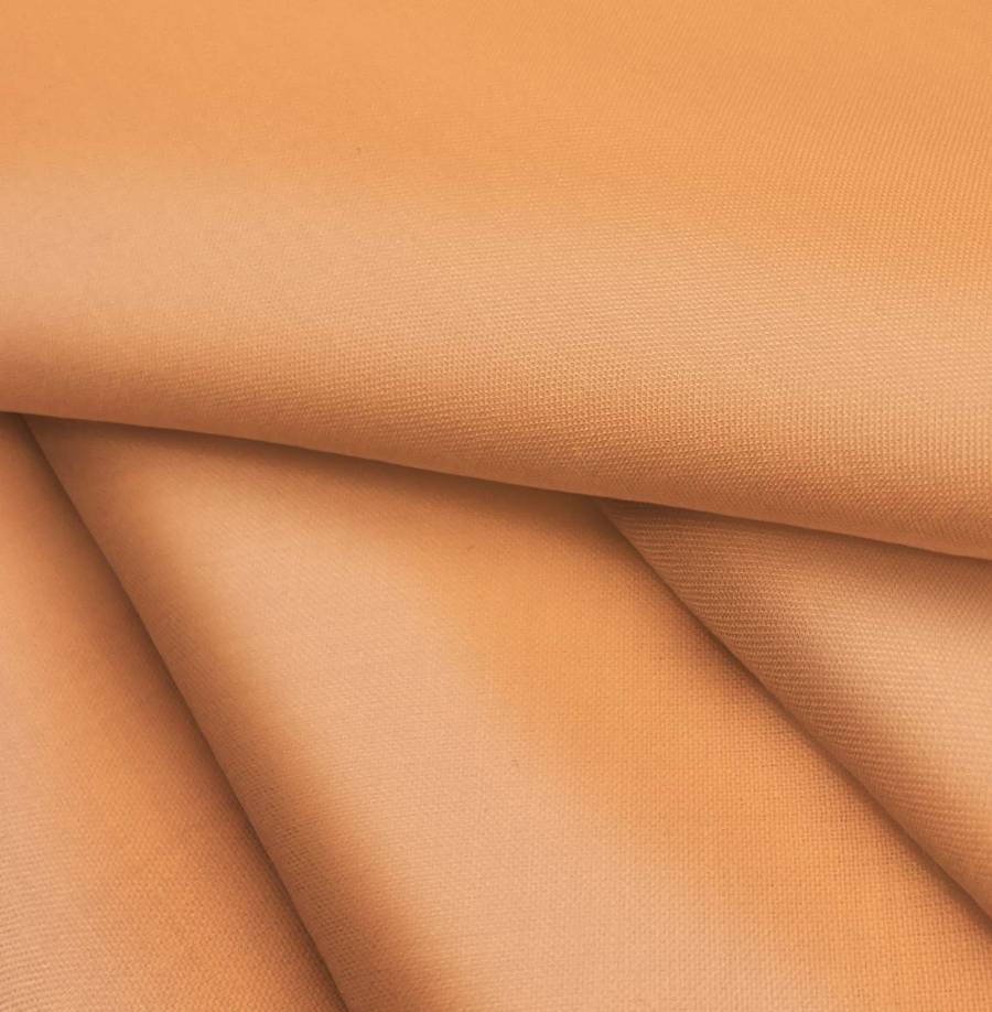 La tela base Voile Ligero - Kyoto es un material de poliéster suave y translúcido, con un peso ligero de 79 gr/m2. El color impreso es Naranja Cáscara de Huevo, con CMYK 1 57 71 0, combinando tonos cálidos y suaves. Este color secundario combina especialmente bien con tonos tierra y neutros, como marrones y beige.
