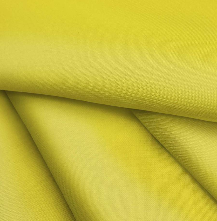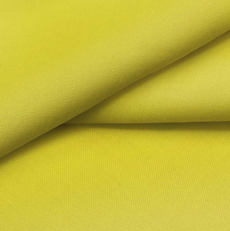 La tela base Voile Ligero - Kyoto es de color amarillo bambú, con una composición de 100% poliéster y un gramaje de 79 gr/m2. El color liso impreso tiene un CMYK de 22 19 91 3, lo que le da un tono amarillo cálido y vibrante. Combina especialmente bien con tonos tierra como marrones y verdes.