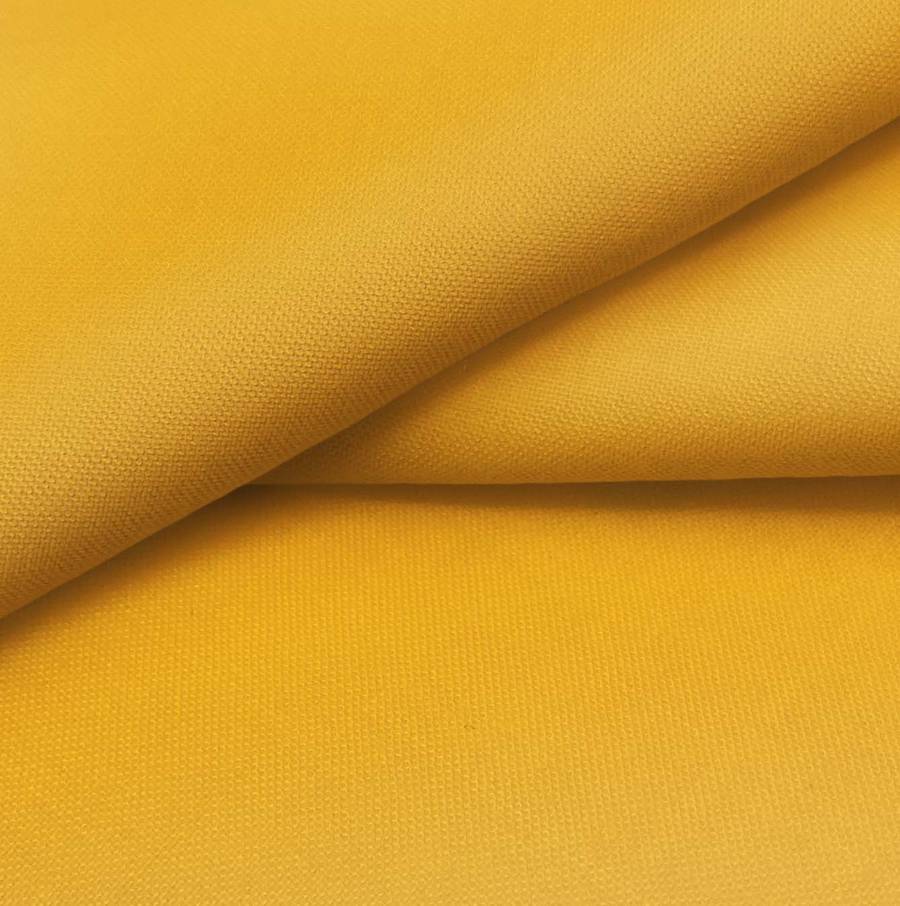 La tela base de esta composición 100% POLIÉSTER es el Voile Ligero - Kyoto, con un gramaje de 79 gr/m2, ancho de 148 cm y una textura suave y translúcida. El color liso impreso es Amarillo Caléndula, con unos atributos de CMYK de 0 49 93 0, lo que le otorga un tono cálido y alegre. Este color secundario combina especialmente bien con tonos neutros como blanco, gris y beige, resaltando su luminosidad y vitalidad.