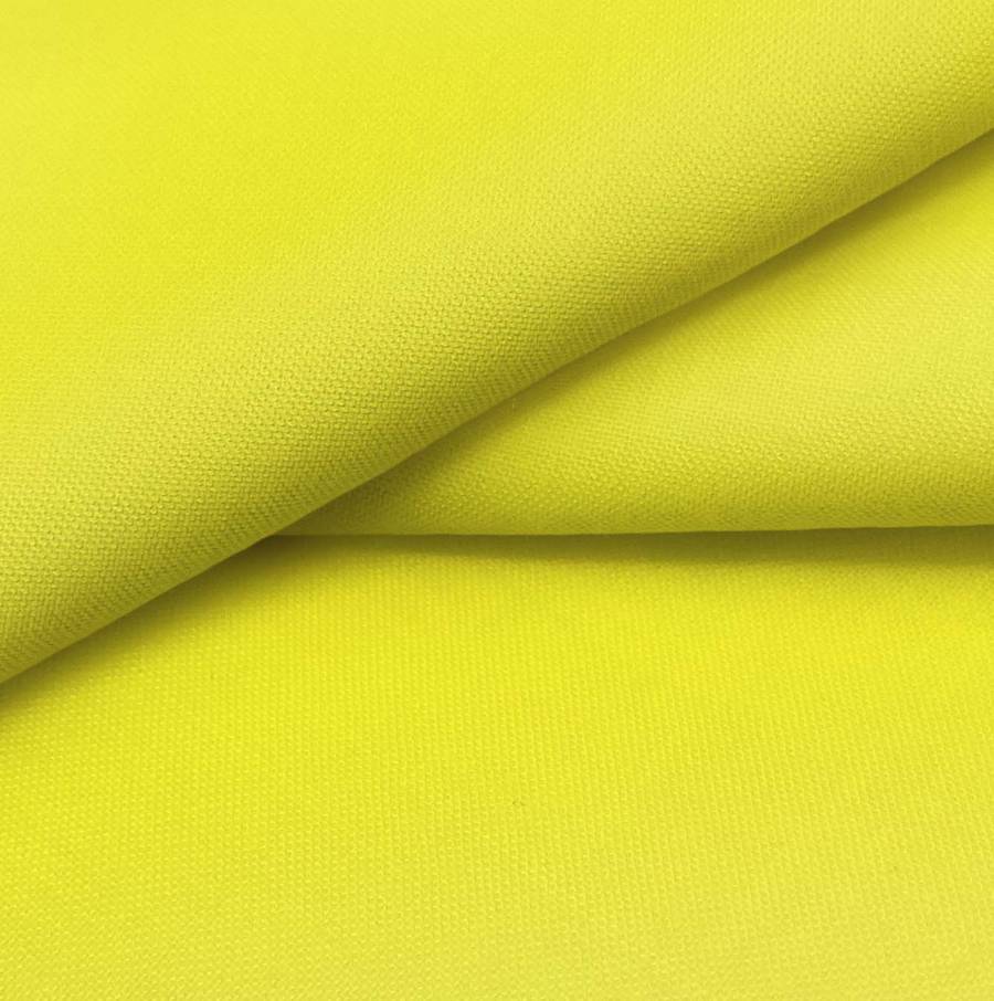 La tela base Voile Ligero - Kyoto es de color amarillo neón, con un CMYK de 7 0 85 0. Este color vibrante representa la alegría y la vitalidad, siendo ideal para prendas y decoraciones llamativas. Combina perfectamente con tonos neutros como blanco, gris o negro, así como con colores complementarios como el azul o el verde.