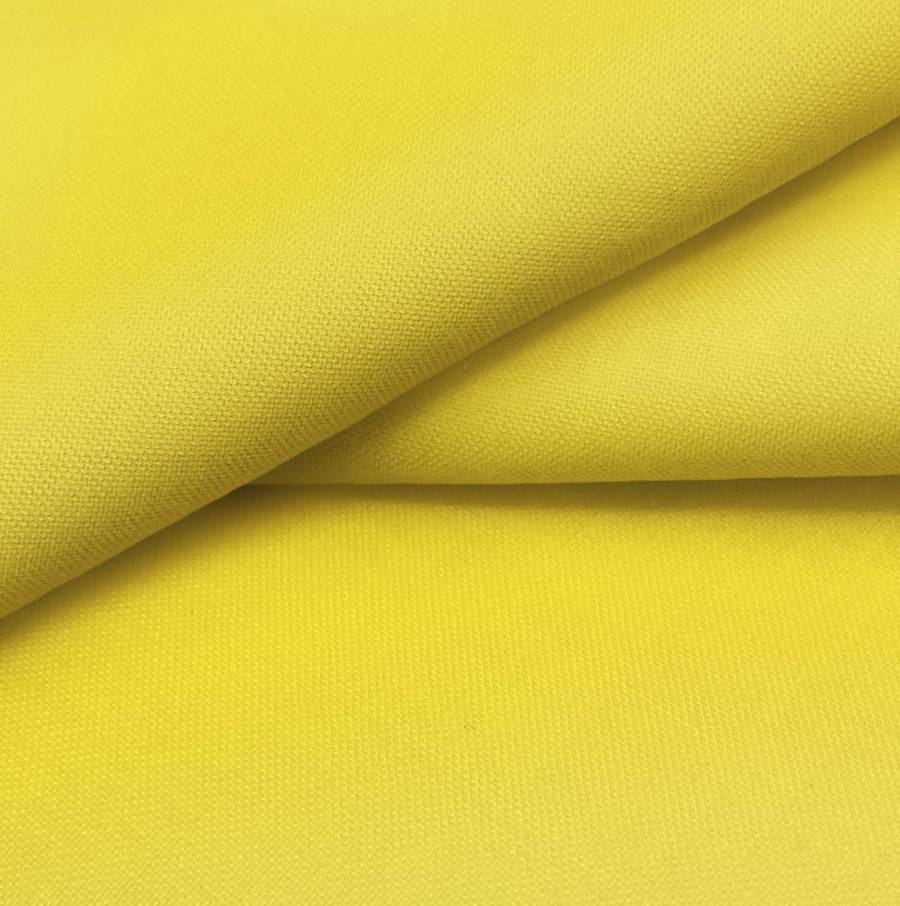La tela base Voile Ligero - Kyoto es de color amarillo Postal, con un CMYK de 1 17 85 0. Este color amarillo brillante representa la alegría y la energía, combinando perfectamente con tonos neutros como blanco, gris y negro, así como con tonos complementarios como azul y morado.