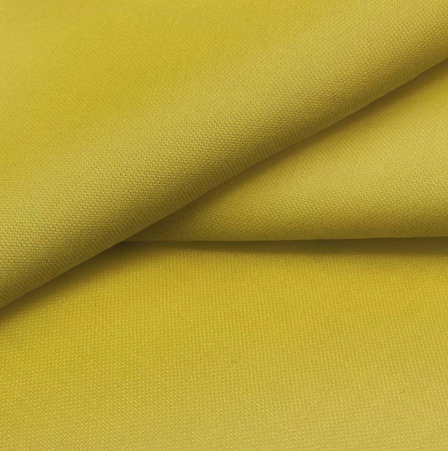 La tela base, Voile Ligero - Kyoto, es de color amarillo sahara, con un CMYK de 26 32 93 12. Este color transmite calidez y luminosidad, combinando perfectamente con tonos neutros como el blanco, gris o beige. El tejido está impreso con este color liso a una sola cara por impresión digital textil, lo que le otorga un acabado vibrante y duradero.