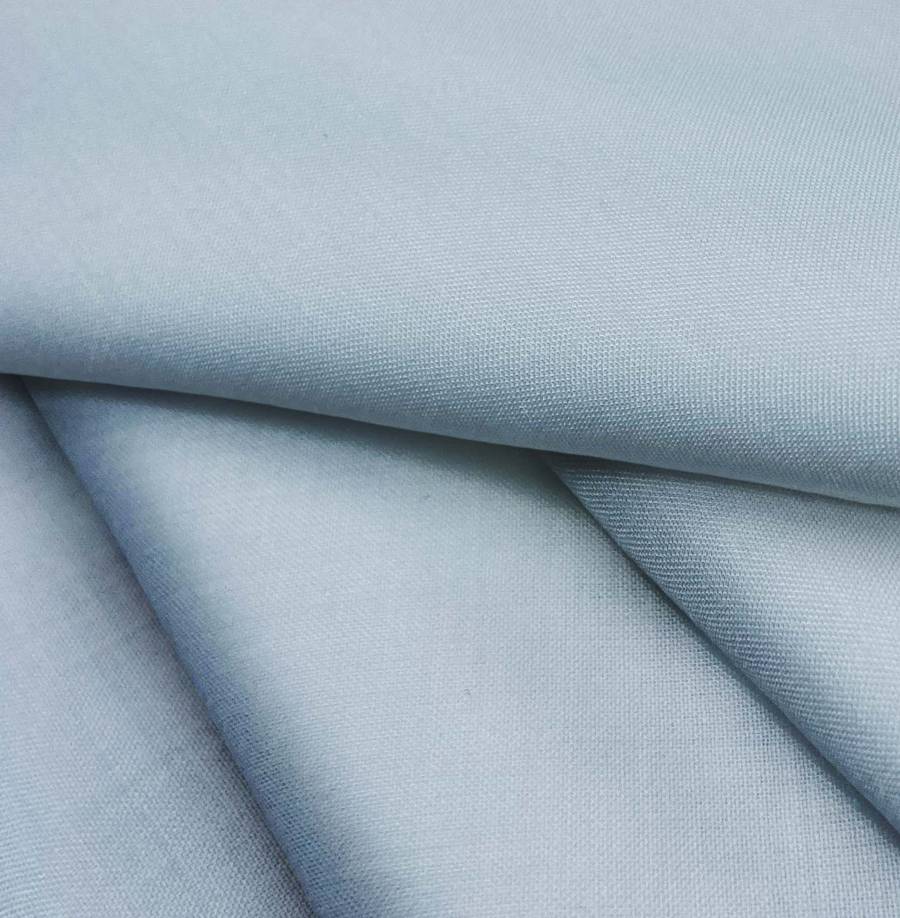 La tela base es Voile Ligero - Kyoto, con un color liso impreso en tonalidades de gris y azul claros. El CMYK del color es 47 28 24 5, creando un efecto suave y delicado. Este color combina especialmente bien con tonos neutros como blanco, beige y negro, creando una paleta elegante y sofisticada.