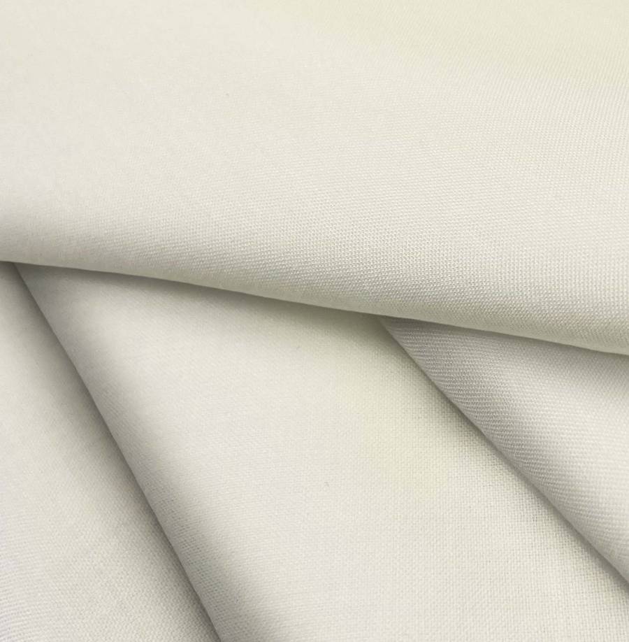 La tela base de Voile Ligero - Kyoto es de color blanco, con un tono suave y translúcido, reflejando un CMYK de 10 10 27 0. El color arena, con una combinación de 10% Cyan, 10% Magenta y 27% Yellow, aporta calidez y elegancia, combina perfectamente con tonos tierra, dorados y neutros.