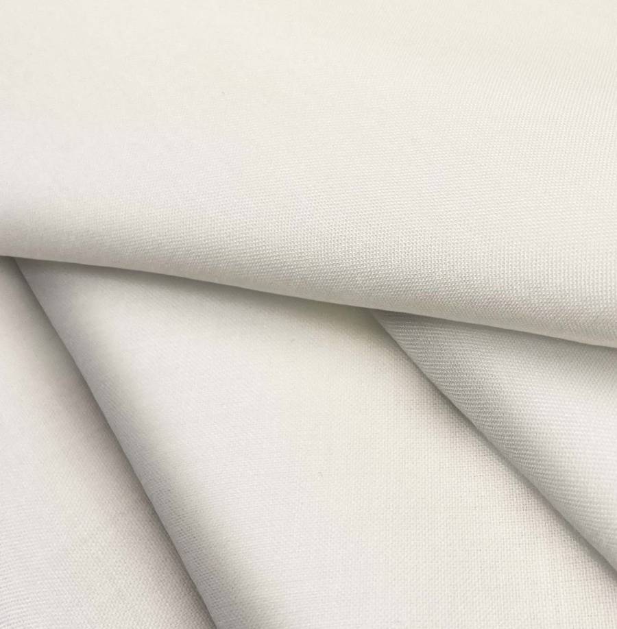 La tela base, Voile Ligero - Kyoto, es de composición 100% poliéster, con un gramaje de 79 gr/m2 y un ancho de 148 cm. El color liso impreso es Blanco Antiguo, con una combinación de tintas Cyan: 2, Magenta: 9, Yellow: 18, Black: 0, y un CMYK de 2 9 18 0. Este color se caracteriza por ser suave, delicado y transmitir calma, ideal para crear ambientes relajantes. Combina especialmente bien con tonos pastel y neutros, como rosa claro, gris o agua marina.