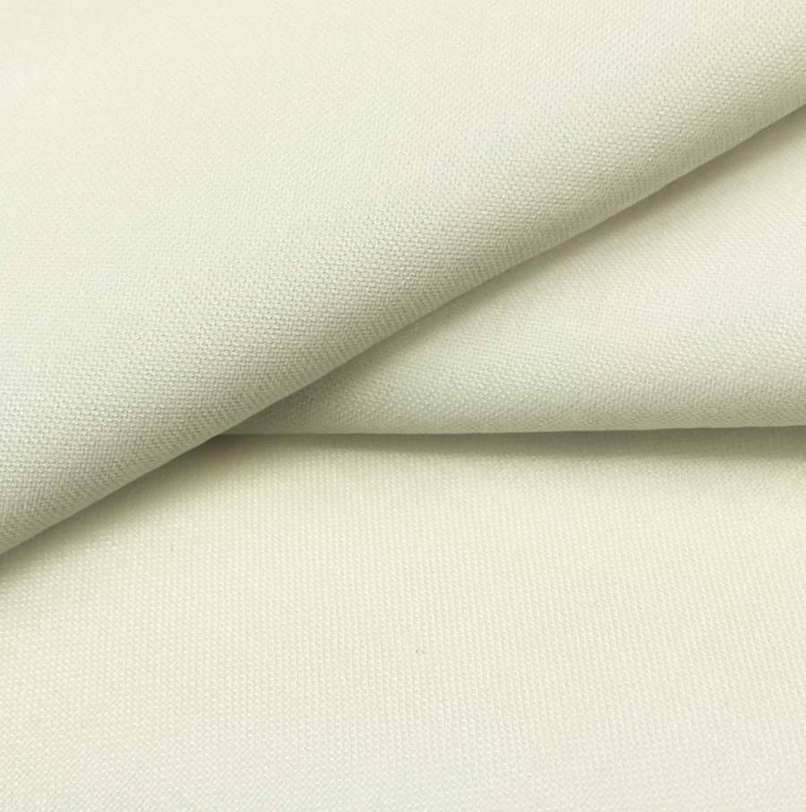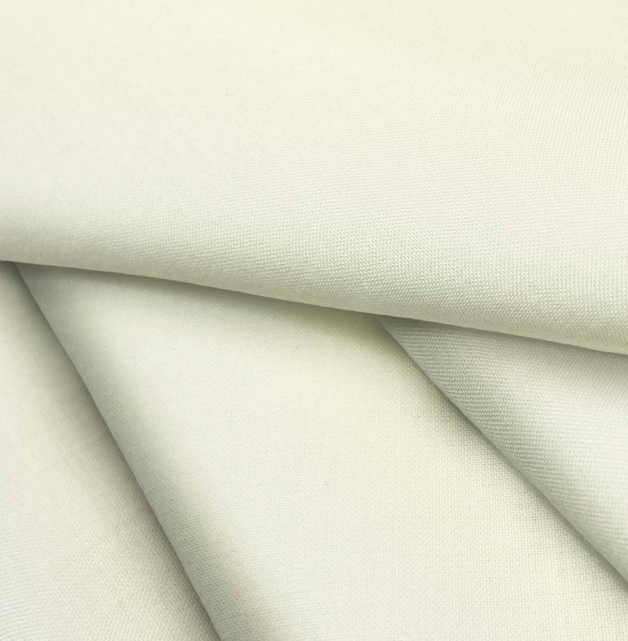 La tela base Voile Ligero - Kyoto es de color blanco y crema, con una composición de 100% poliéster. El color liso impreso tiene un CMYK de 2 0 25 0, que combina perfectamente con tonos pasteles y neutros. El tejido está impreso a una sola cara por impresión digital textil, no tintado.