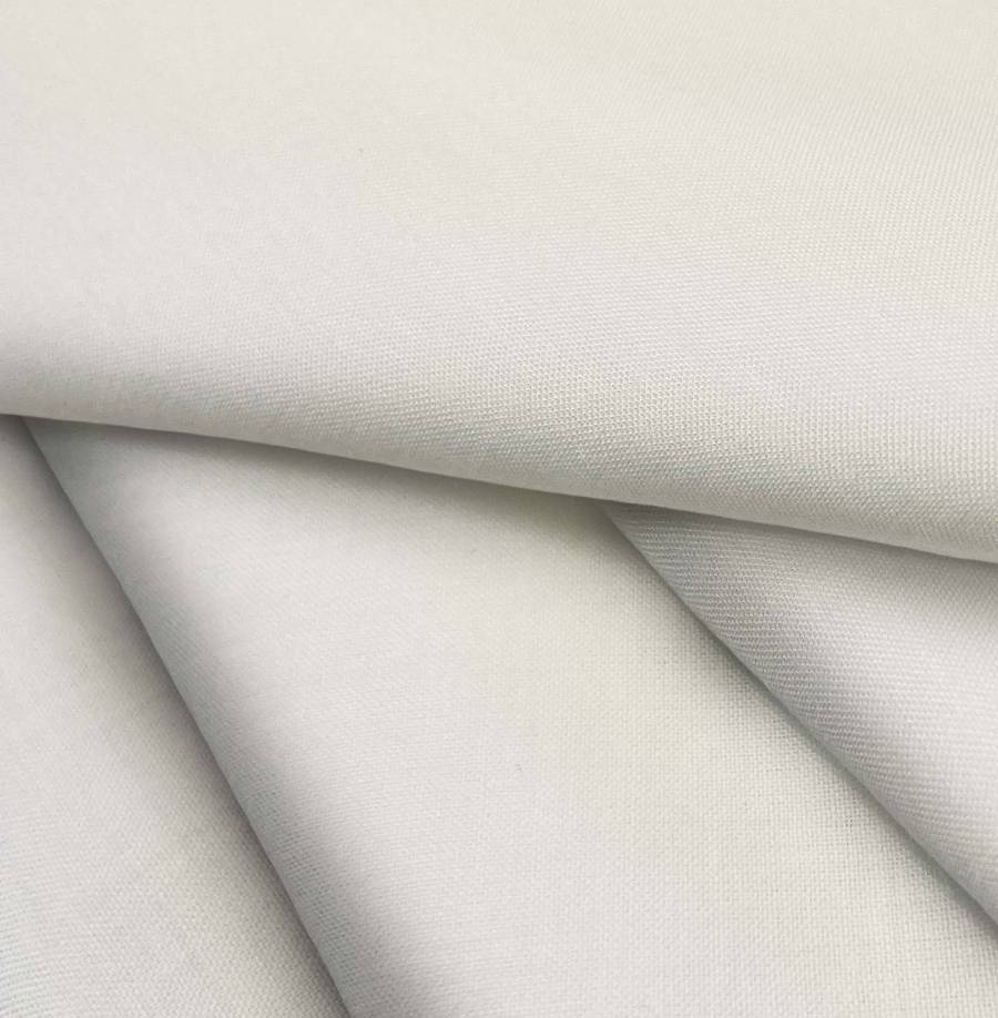 La tela base, Voile Ligero - Kyoto, es de composición 100% poliéster con un gramaje de 79 gr/m2. El color liso impreso es Blanco/Hueso, con un CMYK de 13 13 23 0. Este color secundario simboliza la pureza y la elegancia, combinando especialmente con tonos neutros como gris, negro y beige.