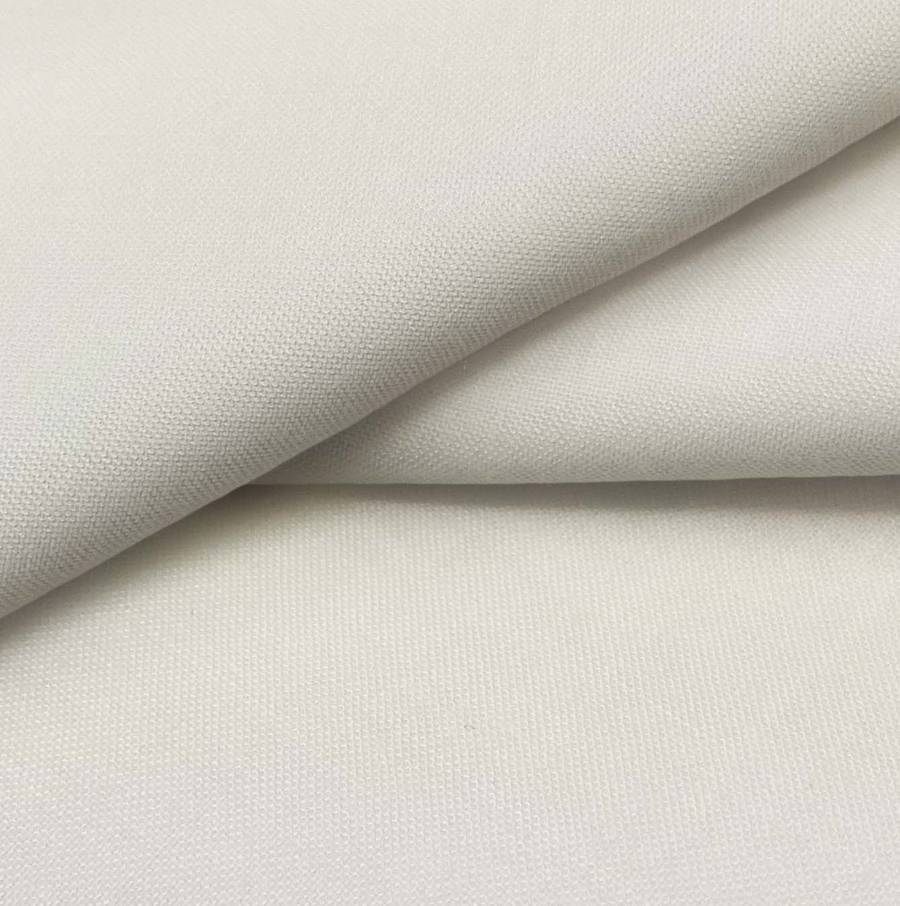 La tela está impresa con el color liso a una sola cara por impresión digital textil, lo que le confiere un acabado muy definido y duradero. La textura suave y translúcida del Voile Ligero se complementa perfectamente con el color blanco/hueso, resaltando su suavidad y ligereza.