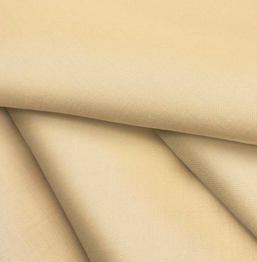 La tela base, Voile Ligero - Kyoto, es un tejido de poliéster translúcido y suave, de color naranja albaricoque oscuro con un CMYK de 3 27 52 0. Este color secundario se caracteriza por su tono cálido y vibrante, ideal para prendas de verano. Combina muy bien con colores neutros como blanco, beige o negro.