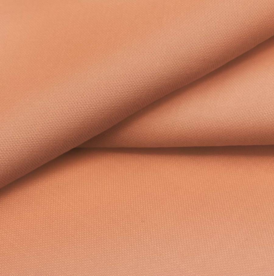 La tela base Voile Ligero - Kyoto es de composición 100% poliéster y se caracteriza por su textura suave y translúcida. El color liso impreso en esta tela es Naranja Cinabrio, con un CMYK de 8 61 65 1. Este tono se describe como un naranja intenso y vibrante, que combina muy bien con colores como el amarillo, el blanco y el verde para crear contrastes llamativos y alegres.