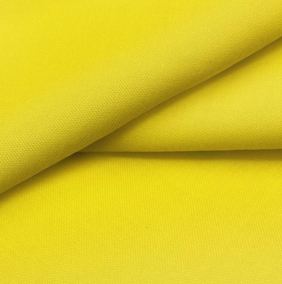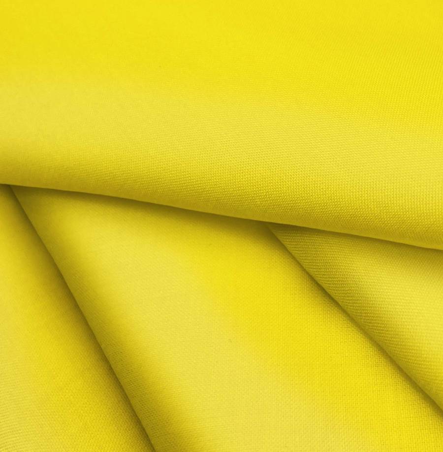 La tela base Voile Ligero - Kyoto es de color amarillo huevo, reflejando el contenido del CMYK del color liso indicado (0 16 91 0). Este tono amarillo suave y cálido combina muy bien con colores neutros como blanco, gris y beige, así como con tonos más intensos como azul marino o verde oscuro.