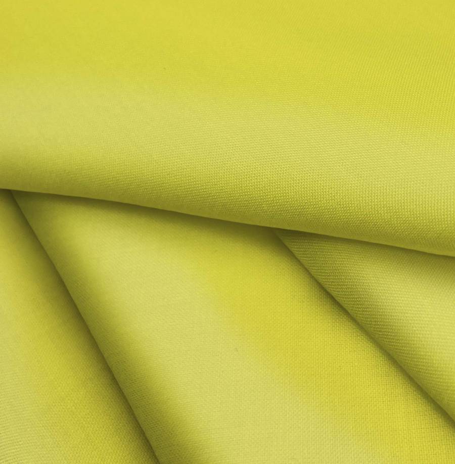 La tela base Voile Ligero - Kyoto es de color verde Cartuja, con un CMYK de 28 16 89 2. Este color simboliza la frescura y la tranquilidad, perfecto para la primavera y el verano. Combina muy bien con tonos neutros como blanco o beige.