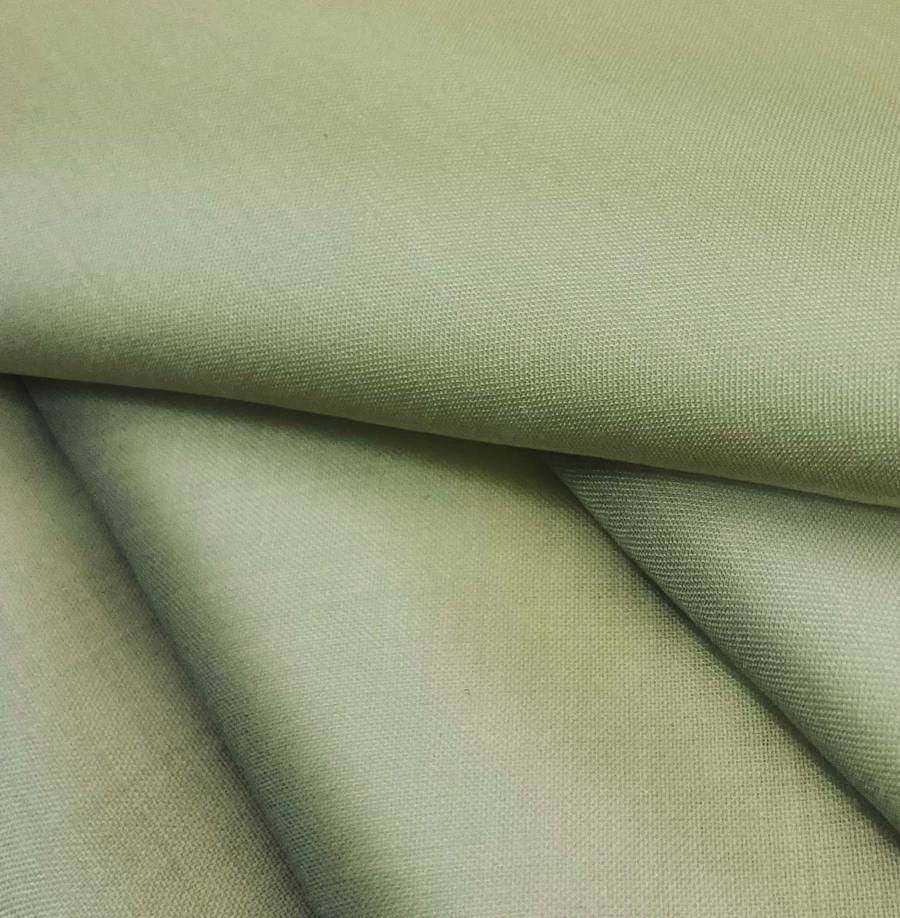 La tela base Voile Ligero - Kyoto es un tejido de poliéster suave y translúcido, con un color liso impreso de tonalidad Verde Oliva, con un CMYK de 49 33 67 17. Este color combina perfectamente con tonos tierra, neutros y colores cálidos.