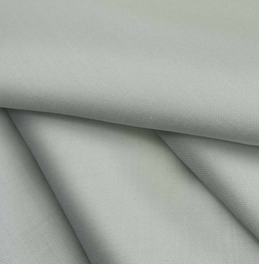 La tela base, Voile Ligero - Kyoto, es de composición 100% poliéster y tiene un gramaje de 79 gr/m2. El color liso impreso en esta tela es Verde Salvia, con un CMYK de 42 28 39 10. Este color evoca la naturaleza, la frescura y la tranquilidad. Combina muy bien con tonos neutros como blanco, beige y gris, así como con tonos más intensos como el azul marino y el burdeos.