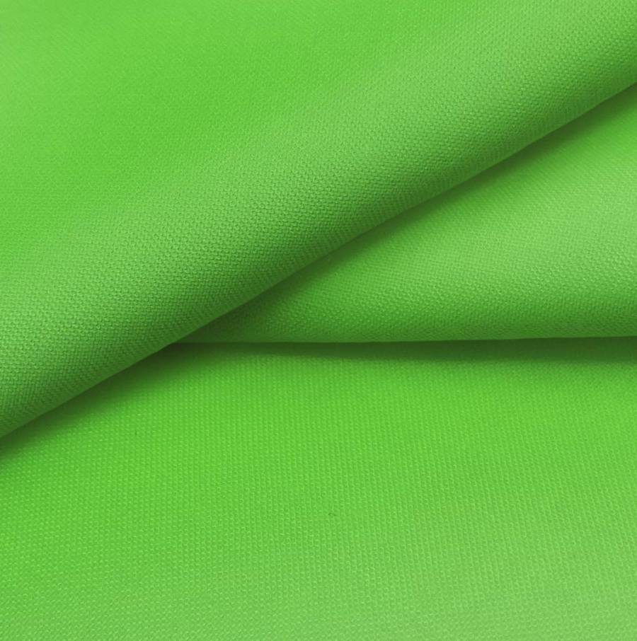 La tela base es un Voile Ligero - Kyoto de 100% poliéster en color verde loro, con un CMYK de 67 0 96 0. El color verde loro evoca la naturaleza y la frescura, combina perfectamente con tonos neutros, como blancos y grises, aportando equilibrio y armonía a la pieza.