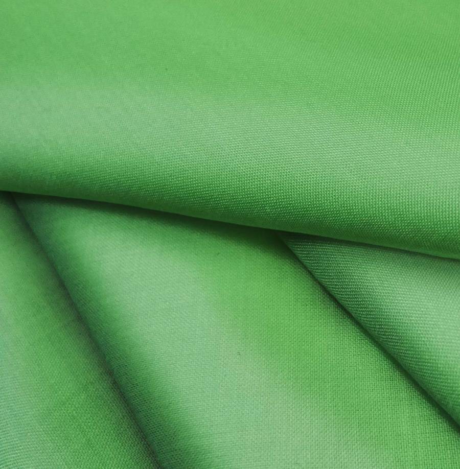 La tela Voile Ligero - Kyoto es un tejido translúcido y suave de poliéster, de color Verde Mayo con una combinación de tintas Cyan, Magenta, Yellow y Black en un CMYK de 74 21 92 5. Este color secundario se caracteriza por ser fresco, vibrante y primaveral, combinando perfectamente con tonos neutros como blancos, grises y cremas, así como con otros verdes más oscuros y azules.
