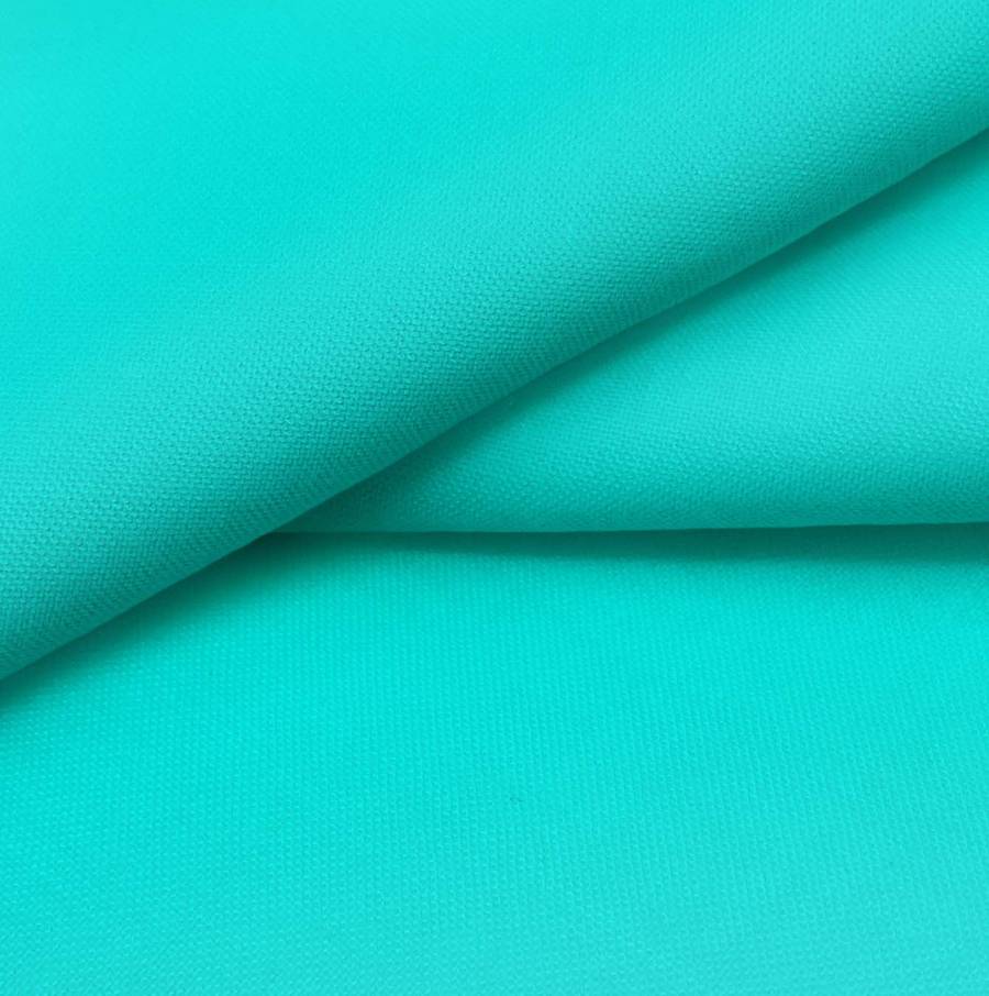 La tela base es Voile Ligero - Kyoto, con un color liso impreso en Verde Espuma de mar, con un CMYK de 65 0 31 0. Este color simboliza frescura y tranquilidad, combinando perfectamente con tonos neutros como blanco, crema y gris.