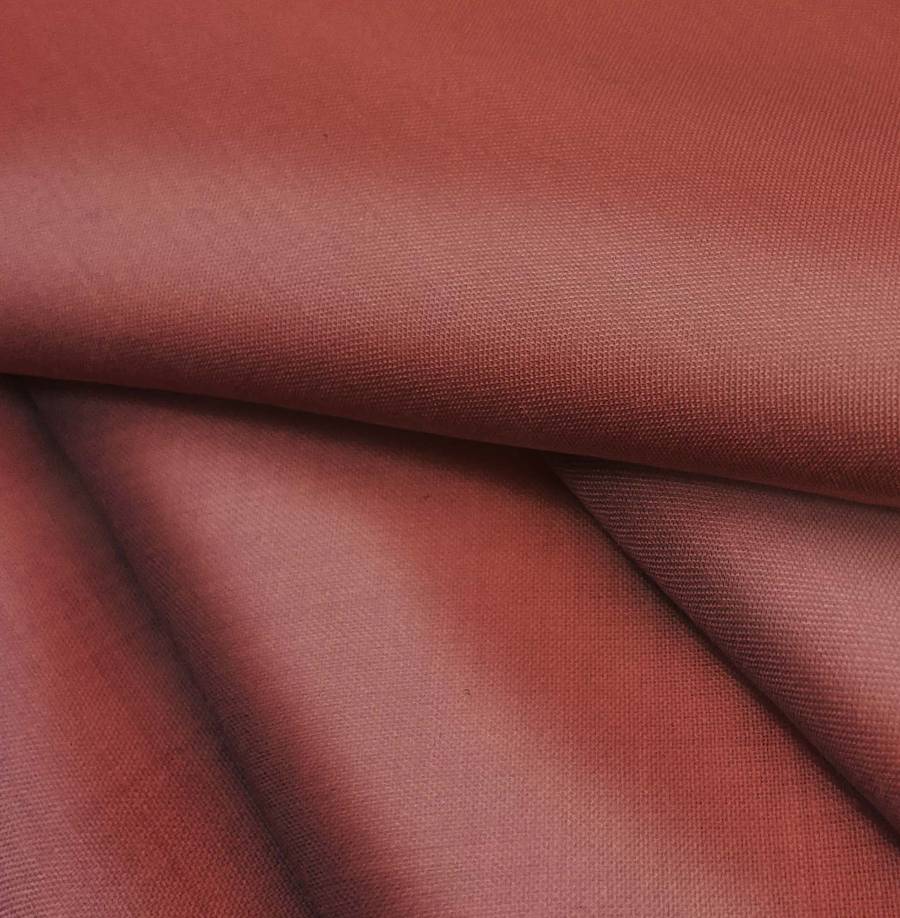 La tela base Voile Ligero - Kyoto es de composición 100% poliéster con un gramaje de 79 gr/m2 y un ancho de 148 cm. El color liso impreso es Rojo Inglés, con una combinación de tintas Cyan: 33, Magenta: 84, Yellow: 78, Black: 44, y un CMYK de 33 84 78 44. Este color secundario es vibrante y profundo, combina especialmente bien con tonos neutros como el blanco, beige y gris.
