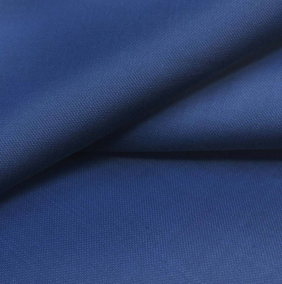 La tela base es Voile Ligero - Kyoto de color azul medianoche, con un CMYK de 100 83 34 25. Es suave, translúcida y delicada. Se combina especialmente con colores neutros como blanco o gris. Está impresa a una sola cara por impresión digital textil.