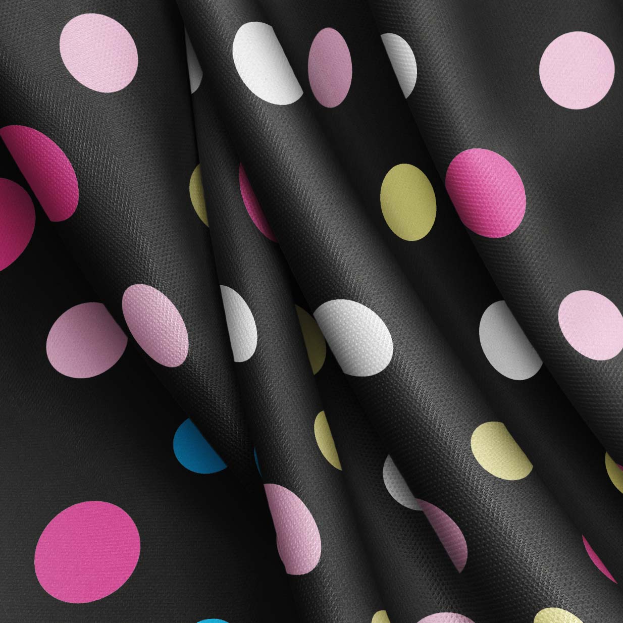 La tela Piqué para Polo - Durban es un tejido 100% poliéster de 180 gr/m2 y 150 cm de ancho, cuyo diseño estampado cuenta con formas de círculos, motas, topos y lunares en tonalidades predominantes de negro, rosa cerdito y rosa ciruela. Este diseño simboliza la diversidad y espontaneidad, y técnicamente se puede combinar con tonos lisos de rosa, negro, blanco, gris y azul marino.