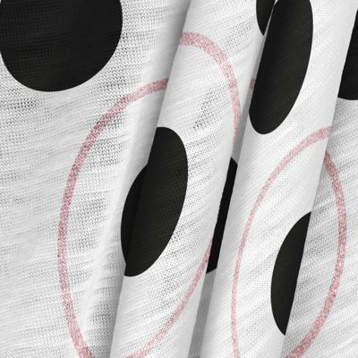 La tela en cuestión es una Sarga de Algodón Orgánico - Florencia, con una composición del 100% de algodón orgánico y un gramaje de 195 gr/m2. Su diseño estampado se caracteriza por formas de círculos y puntos en tonos blanco algodón, negro noche y rosa malva profundo. Esta tela impresa a una sola cara por impresión digital textil, se presenta con una textura suave y rígida. Combinaría perfectamente con tonos lisos de blanco, negro, rosa, gris, azul y verde. Además, es una tela muy versátil, apta para decoración en cuadros y bastidores, moda como pantalones, sobrecamisas, jeans y accesorios, y otros usos como neceseres, monederos, cojines y manteles. Para su cuidado se recomienda lavar a una temperatura máxima de 30ºC, no utilizar blanqueadores, no utilizar secadora y planchar a baja temperatura. La tecnología de impresión usada es la digital directa reactiva para fibras naturales, lo que asegura una alta calidad de impresión y respeto por el medio ambiente.