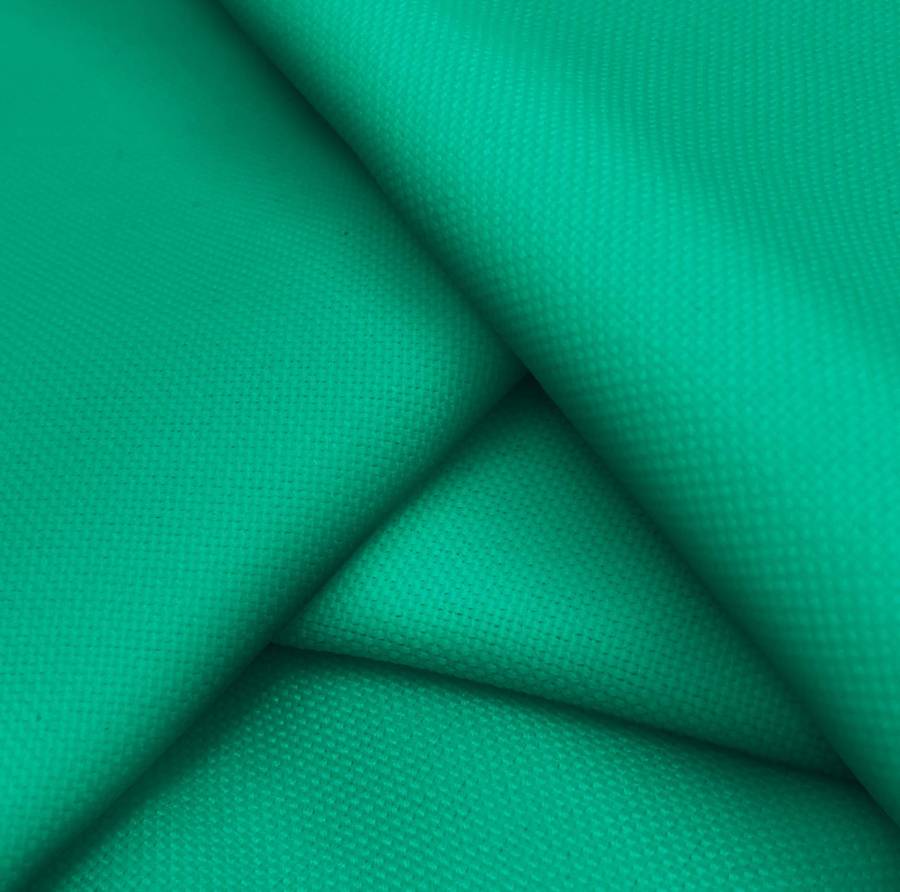 La tela base, Loneta Reciclada de PET - Dallas, es una loneta de 100% poliéster con un gramaje de 260 gr/m2 y un ancho de 160 cm. El color liso impreso es un verde menta oscuro con los valores CMYK de 85 23 69 7. Este color representa frescura, tranquilidad y naturaleza. Combina perfectamente con otros colores pastel como rosa, amarillo y azul.