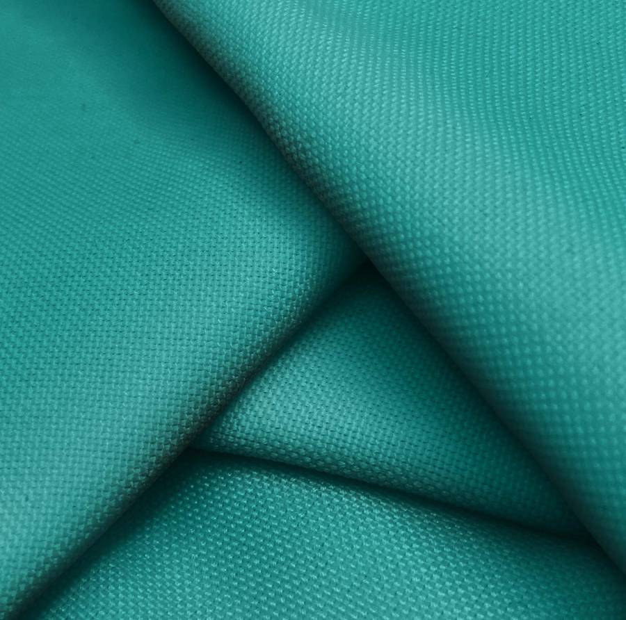 La tela base es la Loneta Reciclada de PET - Dallas, compuesta al 100% de poliéster, de 260 gr/m2 de gramaje y un ancho de 160 cm. El color liso impreso en esta tela es el Verde azulado medio, cuyo CMYK es 85 30 50 17, lo que indica una predominancia de cian con un toque de magenta y amarillo para un resultado equilibrado. Este color se combina perfectamente con otros colores, como el blanco, el azul marino y el gris, lo que lo hace ideal para decoración y moda.