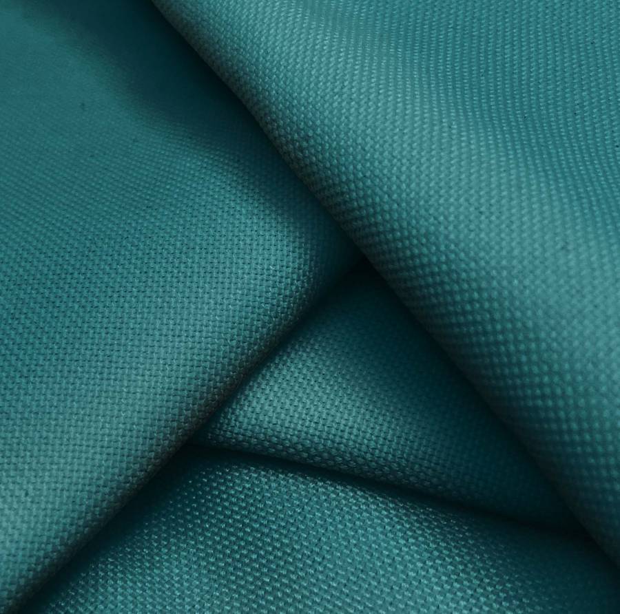 La Loneta Reciclada de PET - Dallas es una tela fuerte y resistente, con un gramaje de 260 gr/m2 y 100% poliéster como composición. El color liso impreso en esta tela es un verde azulado medio, cuyo contenido en CMYK es 92 49 49 44. Este color secundario es simbólico de la naturaleza y la tranquilidad, mientras que técnicamente es opaco y rugoso al tacto. Combina perfectamente con tonos neutros y marrones para lograr un ambiente relajado y natural. Es importante destacar que la tela está impresa con el color liso en una sola cara por impresión digital textil, lo que le da un acabado limpio y de alta calidad.