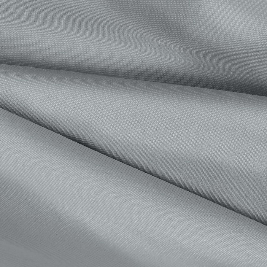 La tela base de este tejido es una Lycra de Poliéster, Nairobi de 270 gr/m2, con una composición de 82% Poliéster y 18% Elastano. El color liso impreso es de un Gris con tonalidades de Plata metálica, que se consigue mediante la combinación de las tintas de Cyan, Magenta, Yellow y Black: CMYK 34 21 23 2. Este tono de gris es elegante y sofisticado, con un acabado brillante y cierto aire metalizado.