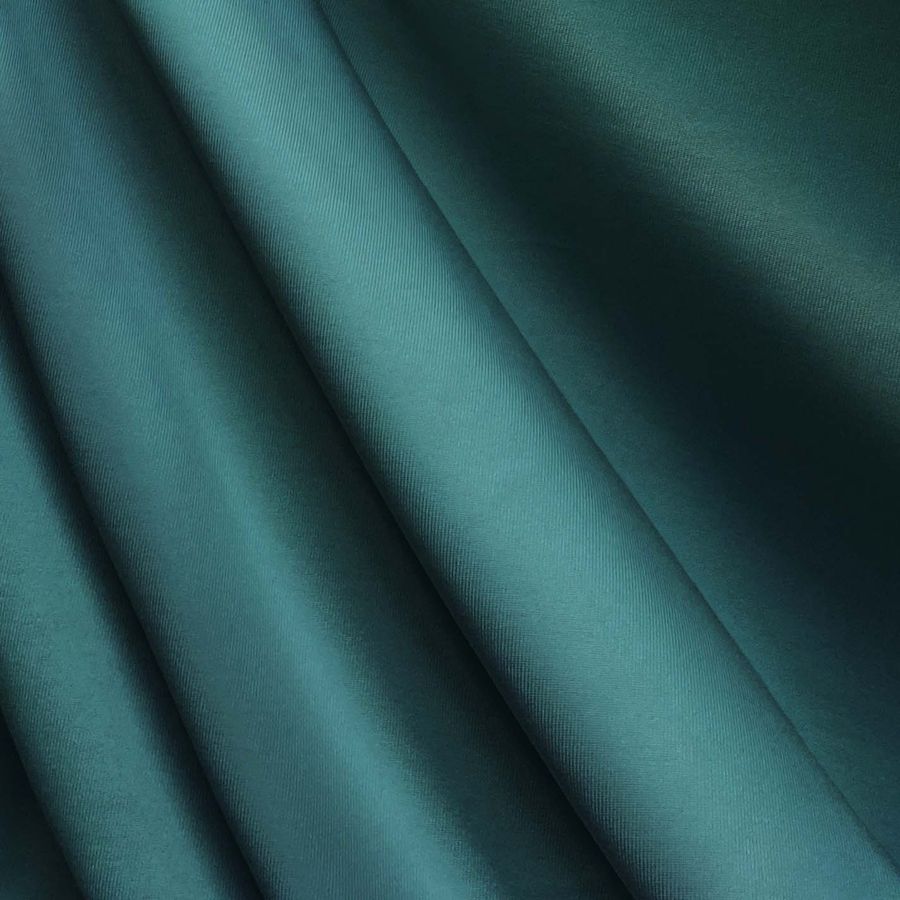 La tela base es una Lycra de Poliéster llamada Nairobi, de 270 gr/m2 y un ancho de 150 cm. En cuanto al color liso impreso, se trata de un tono azul con un toque de verde azulado medio, con un CMYK de 80 40 47 29. Este color combina muy bien con tonos neutros como el beige o el gris, y con otros tonos verdes y azules.