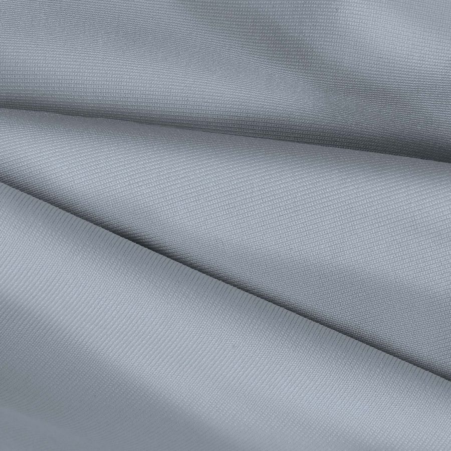La tela base es una Lycra de Poliéster - Nairobi de 270 gr/m2 en tonos grisáceos y azules, con una fórmula de impresión de CMYK: 36 21 17 1. El color secundario es un gris azulado suave y moderno que combina muy bien con tonos neutros como el blanco, el negro y el beige, así como con tonalidades más vibrantes como el rojo o el naranja.