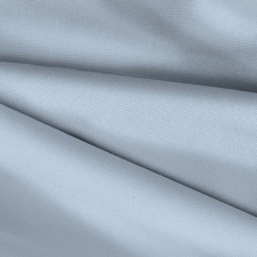 La tela base es una Lycra de Poliéster llamada Nairobi, con una composición de 82% de poliéster y 18% de elastano, con un peso de 270 gr/m2 y un ancho de 150 cm. El color impreso es un azul marino con un contenido de CMYK de 26 7 2 0 en tinta cian, magenta, yellow y negro respectivamente. El color azul marino simboliza la estabilidad y la confianza y técnicamente es un color primario oscuro compuesto por una combinación de varios colores primarios. Además, combina bien con tonos azules más claros, grises y colores tierra. Es importante destacar que la tela está impresa con el color liso a una sola cara por impresión digital textil, lo que significa que el color es más vibrante y detallado que en los tejidos tintados.