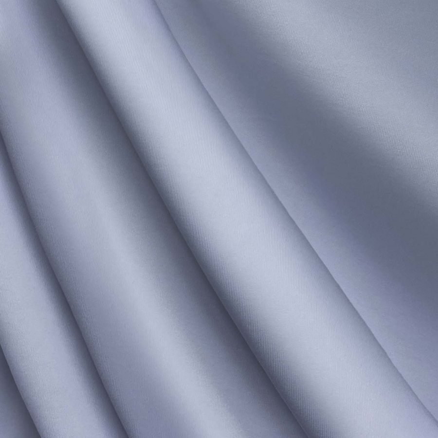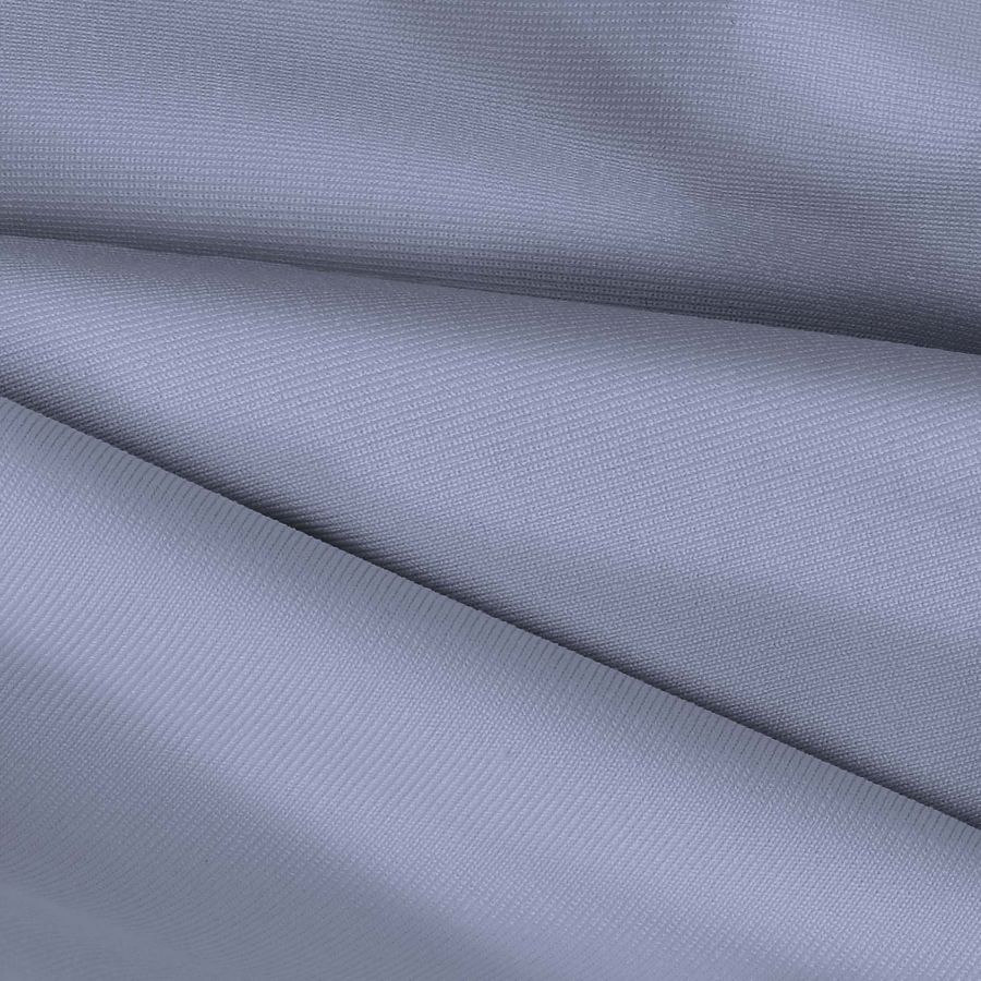 La tela base es Lycra de Poliéster - Nairobi de 270 gr/m2, con una composición de 82% poliéster y 18% elastano, de tipo elástico y de gramaje medio. El color liso impreso es una gama de azules con gris pizarra azul, con un contenido de CMYK: 42 31 9 0. Este color secundario es elegante y sofisticado, y combina bien con tonos neutros y metálicos.