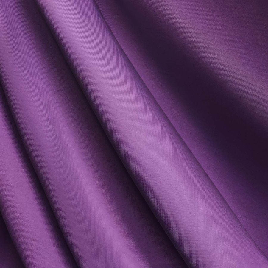 La tela base es una Lycra de Poliéster - Nairobi de 270 gr/m2 de 150cm de ancho, compuesta por un 82% de poliéster y un 18% de elastano. El color liso impreso es un Morado Iris morado con un CMYK de 57-80-5-0. Este color secundario es una mezcla de morado intenso y un toque de rosado oscuro, lo que le da un aspecto elegante y enérgico. Combina bien con colores como el negro, azul oscuro y gris.