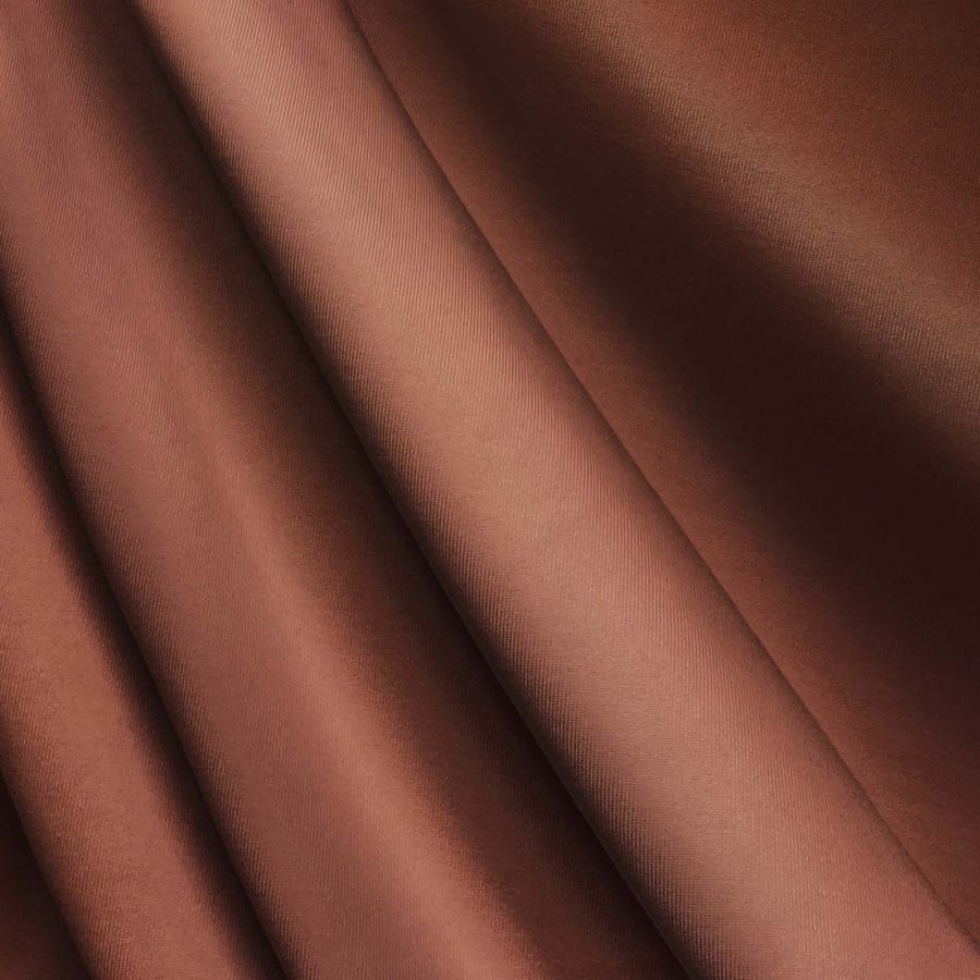La tela base es Lycra de Poliéster - Nairobi de 270 gr/m2, de color marrón siena oscura, representado por el CMYK 30 70 70 31. Es un color que transmite elegancia, sofisticación y atemporalidad, ideal para piezas de moda o deportivas. Combina perfectamente con tonos tierra, beige y nude, pero también con colores más intensos como el verde oscuro o el rojo oscuro.