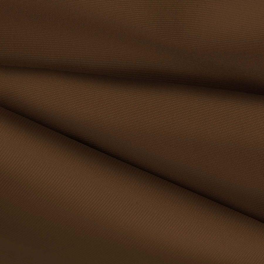 La tela base es una Lycra de Poliéster llamada Nairobi de 270 gr/m2, con una composición del 82% poliéster y 18% elastano. El color liso impreso es de un cálido marrón chocolate con leche, con un CMYK de 42 73 93 62 y combina especialmente bien con tonos tierra, nude y dorados. El tejido está impreso con el color liso a una sola cara por impresión digital textil.
