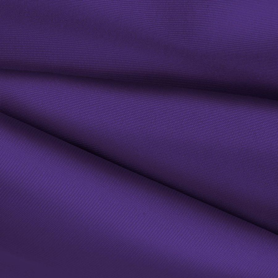 La tela base es una lycra de poliéster llamada Nairobi de 270 gr/m2 de 150 cm de ancho. El color liso impreso tiene una apariencia morado-indigo con un CMYK de 87 100 12 3. Este color secundario evoca la calma espiritual y la introspección. Se combina armónicamente con otros colores como el blanco, el rosa pálido, el gris claro, y el amarillo suave. La tela está impresa con el color liso a una sola cara por impresión digital textil, lo que significa que la imagen se transfiera directamente sobre la superficie del tejido.
