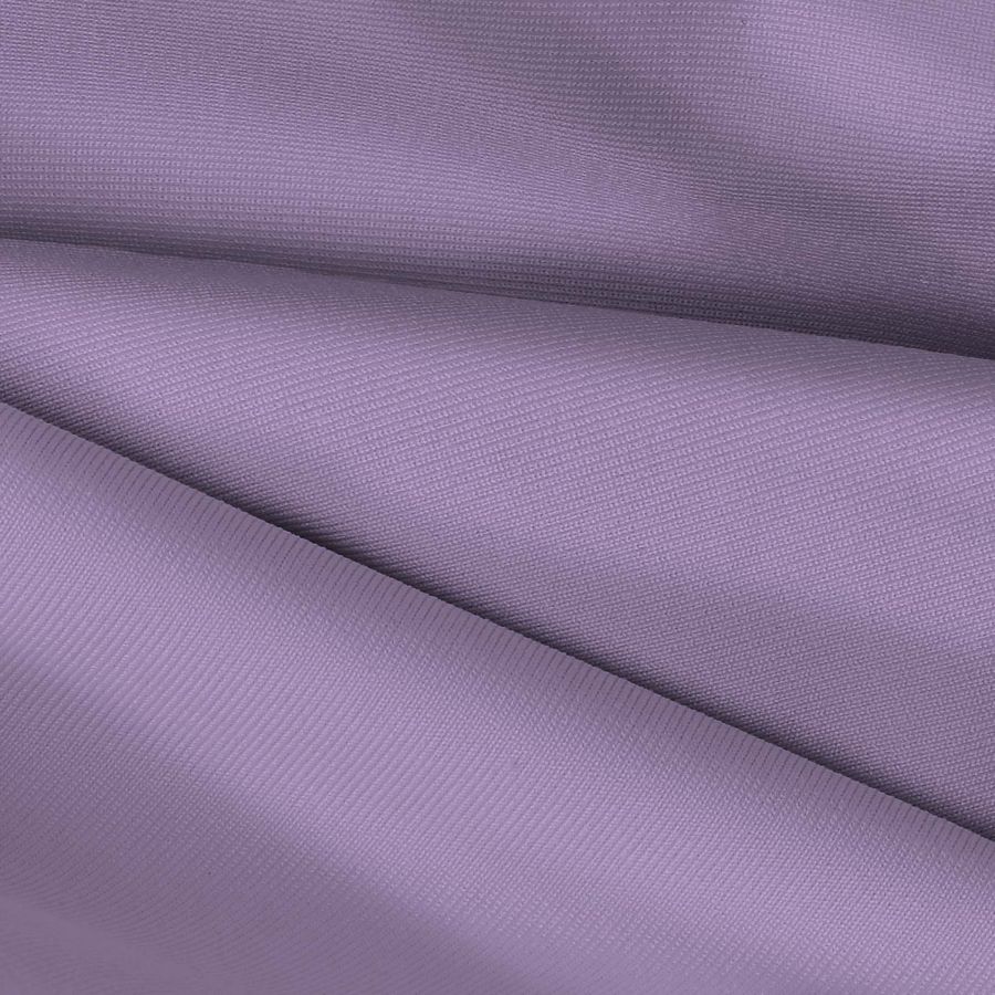 La tela base, Lycra de Poliéster - Nairobi de 270 gr/m2, presenta un color liso impreso en tonalidades morado y lavanda púrpura, con un CMYK de 39 47 5 0, lo que da como resultado un color suave y elegante. El tono lavanda, al ser una mezcla sutil de rojo y azul, transmite equilibrio y armonía. Además, este color combina muy bien con tonos neutros como grises, beige y blanco, así como con tonalidades frías como el azul y el verde. Cabe destacar que el tejido está impreso con el color liso a una sola cara por impresión digital textil, mediante la técnica de sublimación en polyester.