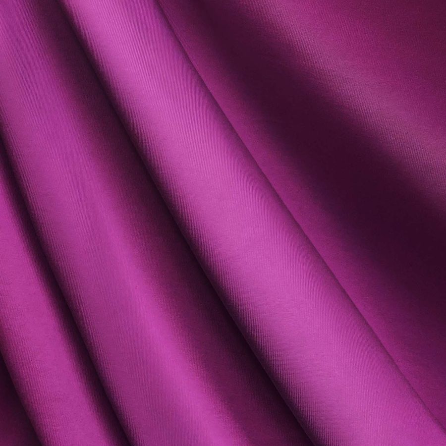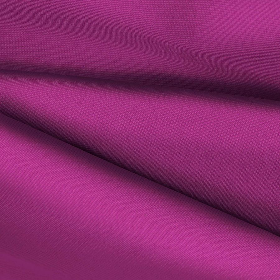 La tela base es la Lycra de Poliéster - Nairobi de 270 gr/m2 de color liso Morado Terciopelo Ciruela, cuyo CMYK es 38 94 1 0. Este color secundario se caracteriza por ser una tonalidad de morado con matices de rojo oscuro que aportan un efecto de profundidad y volumen al tejido. Combina especialmente bien con colores cálidos como el amarillo, naranja o rosa, y crea contrastes interesantes con el verde o el azul.