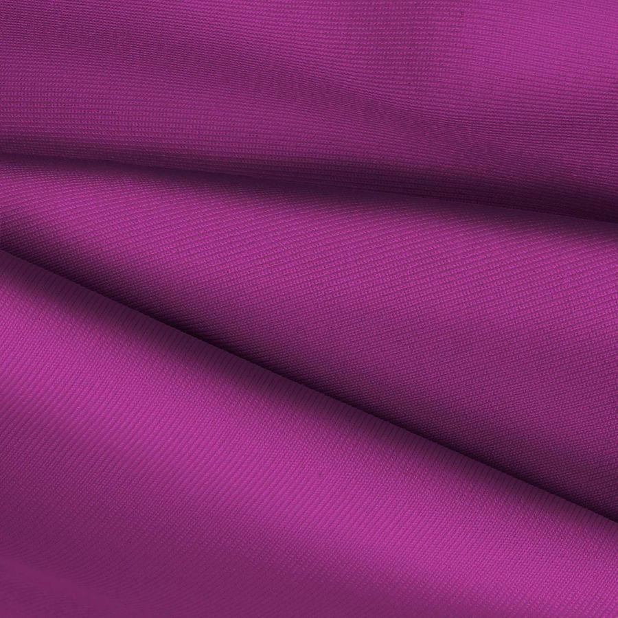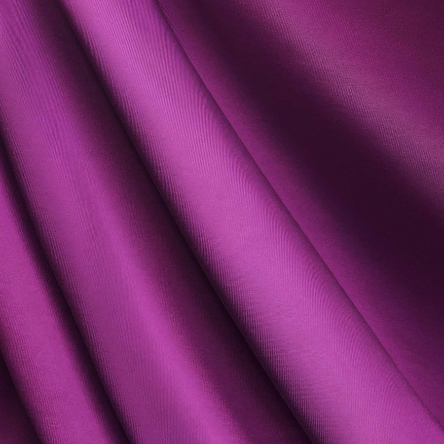 La tela base es Lycra de Poliéster y su color liso impreso es Morado/Púrpura, con un CMYK de 46 95 1 0. Este color secundario es asociado comúnmente con la creatividad, la realeza y la sofisticación. Combina muy bien con colores como el rosa, el azul, el verde, el amarillo y el gris. Cabe destacar que la tela está impresa con este color liso a una sola cara por impresión digital textil, lo que le da una excelente definición gráfica y nitidez a la imagen.