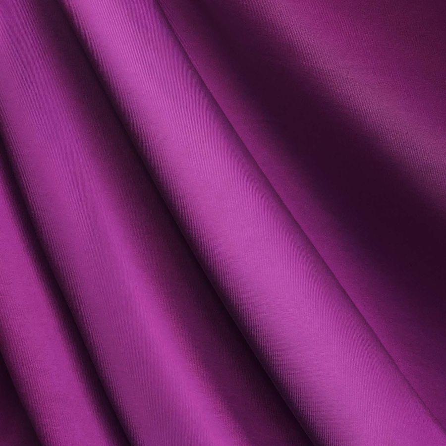 La tela base de este producto es una Lycra de Poliéster - Nairobi con un gramaje de 270 gr/m2, que cuenta con una composición del 82% POLIÉSTER y un 18% ELASTANO. El color liso impreso es Morado/Púrpura, con un CMYK de 51 97 4 0. Este color se combina perfectamente con tonos neutros como el gris y el negro, el blanco y el rosa, lo que permite una gran versatilidad en su aplicación. Cabe mencionar que la impresión del color liso se realiza a una sola cara por impresión digital textil.