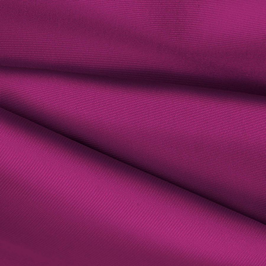 En cuanto a la tecnología de impresión utilizada, la sublimación es un proceso mediante el cual las tintas se convierten en gas y se adhieren al tejido, creando así una imagen de calidad y durabilidad. La impresión digital textil permite la reproducción de diseños complejos de manera rápida y eficiente, lo cual lo convierten en una técnica muy utilizada en la industria de la moda y el textil. En resumen, la Lycra de Poliéster - Nairobi de 270 gr/m2 es un tejido de alta calidad y durabilidad con un color liso Morado-DarkMagenta vibrante y atractivo, ideal para diferentes aplicaciones en la moda y la ropa deportiva.
