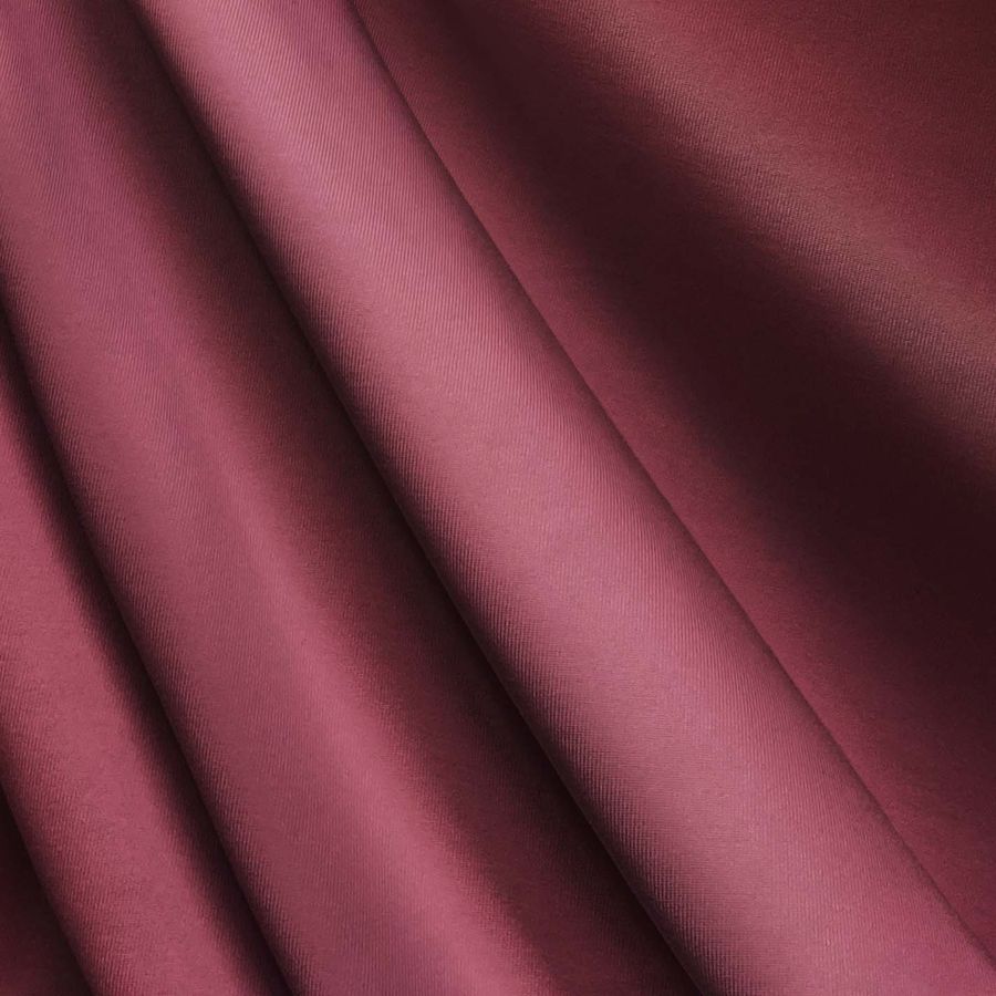 La tela base es Lycra de Poliéster - Nairobi de 270 gr/m2 y su color liso impreso es un Rojo Granate Morado, con un CMYK de 29 80 47 27. Este color destaca por su elegancia y sofisticación, resultando ideal para diferentes prendas de moda y deporte. Combina especialmente bien con tonos marrones, negros, grises y verdes oscuros.