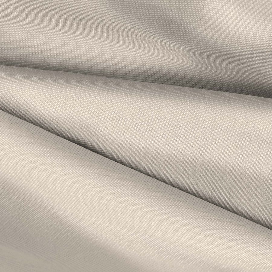 La tela base Lycra de Poliéster - Nairobi de 270 gr/m2 se presenta en un color liso impreso de blanco con un ligero tono marfil suave. El CMYK del color liso es 4 9 18 0, lo que indica que predominan los tonos cálidos. Este color se puede combinar con otros colores cálidos, como tonos terrosos, rojos y naranjas. Este tejido está impreso con el color liso a una sola cara por impresión digital textil, lo que hace que no sea un tejido tintado, sino impreso por una sola cara.