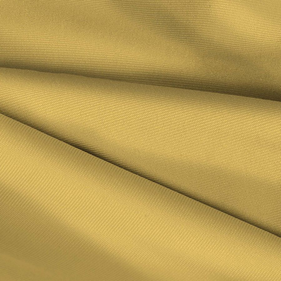 La tela base es una Lycra de Poliéster - Nairobi de 270 gr/m2 de composición 82% poliéster y 18% elastano, con una textura elástica y resistente al cloro. El color liso impreso es amarillo mostaza, con valores de CMYK de 9 22 71 1 y está impreso a una sola cara por impresión digital textil. Este color secundario simboliza el sol y la vitalidad, y combina bien con tonos verdes y marrones.